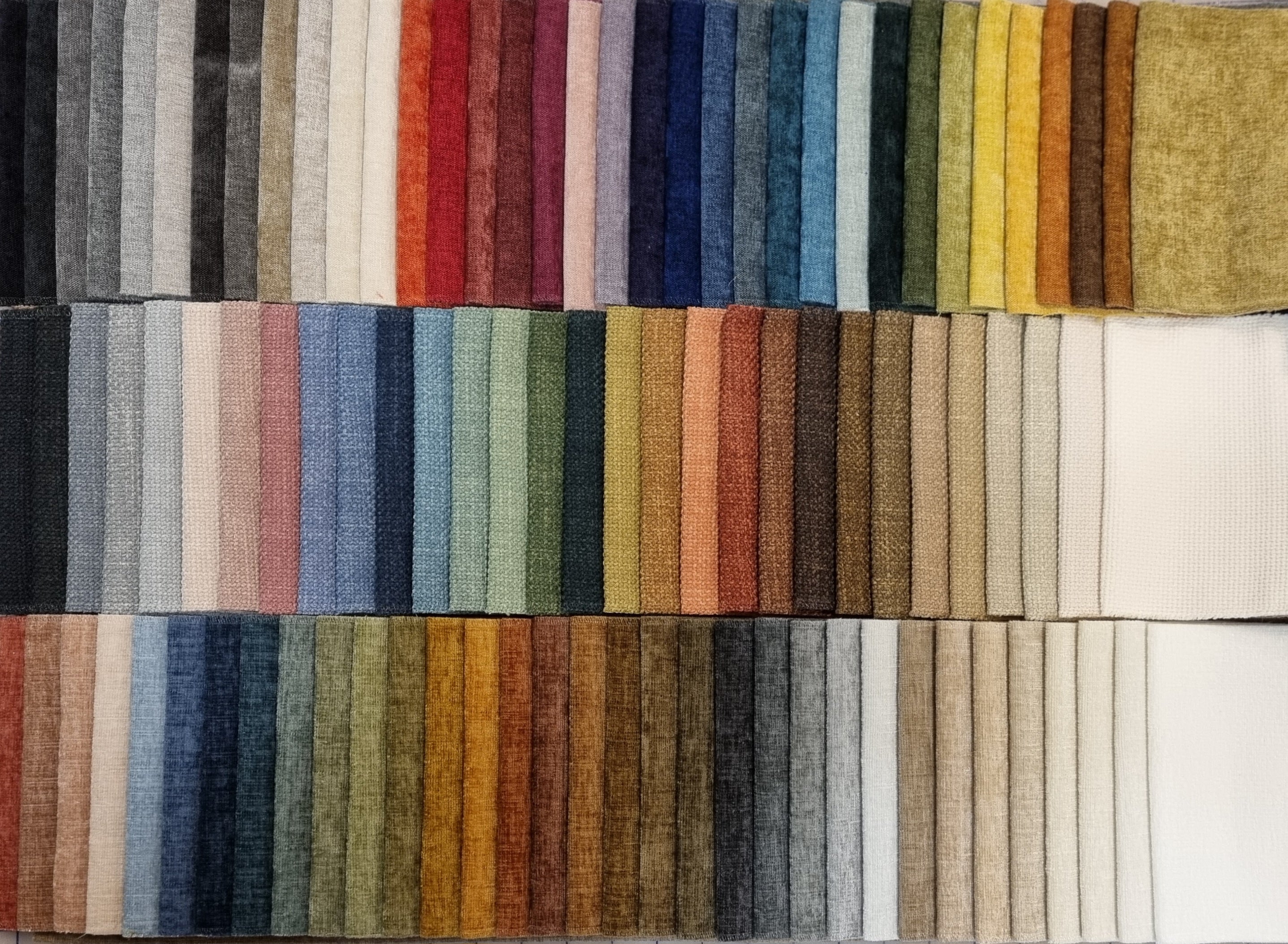 Hos oss kan du låne prøver av møbelstoff i en rekk farger og kvaliteter.